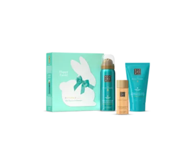 Izbaudiet svētkus ar šo labsajūtai paredzēto ierobežotā piedāvājuma dāvanu komplektu. Šis skaistais zaķa tematikas dāvanu komplekts, kas satur trīs uzmundrinošus vannas un ķermeņa produktus no The Ritual of Karma, kalpos daudz ilgāk nekā šokolāde.